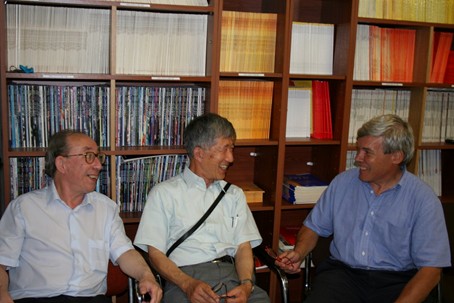 Jacques Baudon, Fujio Shimizu et Martial Ducloy en 2008 au Laboratoire de Physique des Lasers à l’occasion d’un pot de départ.